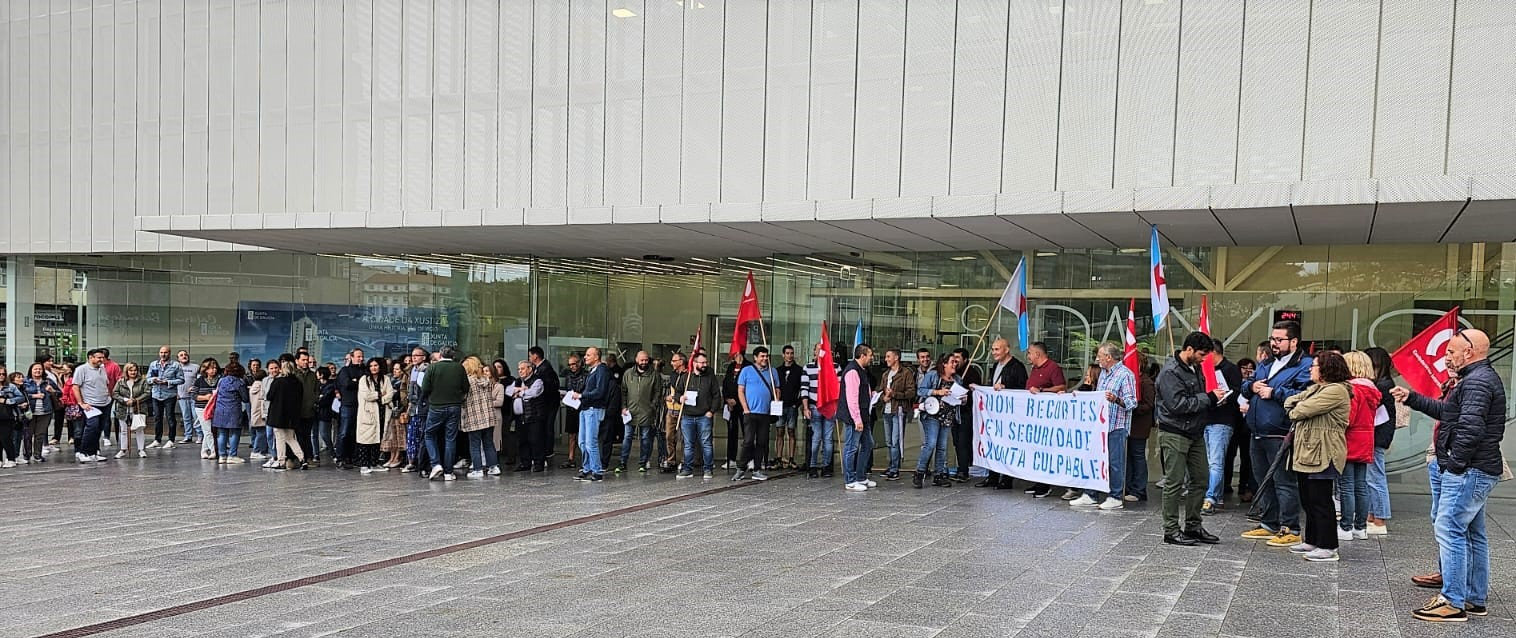 Traballadores do sector da seguridade mobilizáronse hoxe na entrada da Cidade da Xustiza para denunciar que o novo concurso de adxudicación do servizo de vixilancia ten unha dotación económica insuficiente para cubrir os gastos salariais.