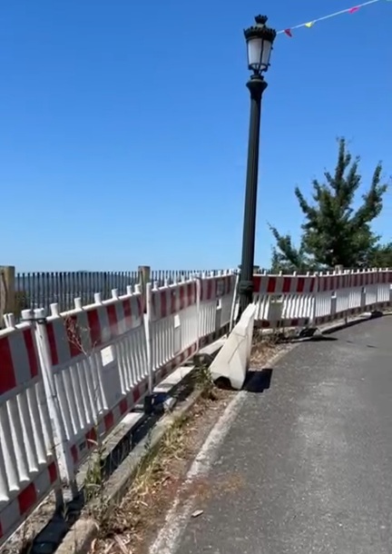 En la actualidad, muestran, tanto los vecinos como los visitantes, cuando llegan al entorno de a capilla, se encuentran con todo vallado y la acera cortada, por lo que tienen que bajar a la carretera para pasar.