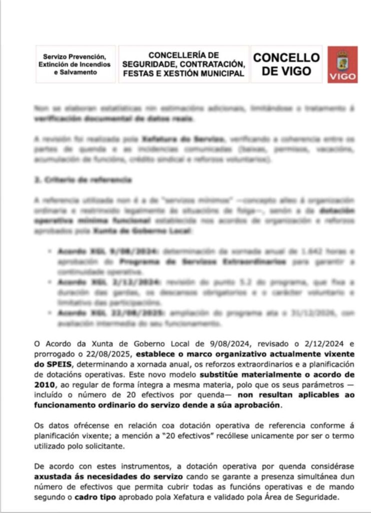 Como ha informado este lunes el concejal popular Fernando González Abeijón, el nuevo texto, “firmado de puño y letra por el alcalde, Abel Caballero” no especifica una cifra concreta de efectivos, lo que genera preocupación entre parte del cuerpo, que advierte del riesgo de sobrecarga y de la falta de previsibilidad en los turnos.