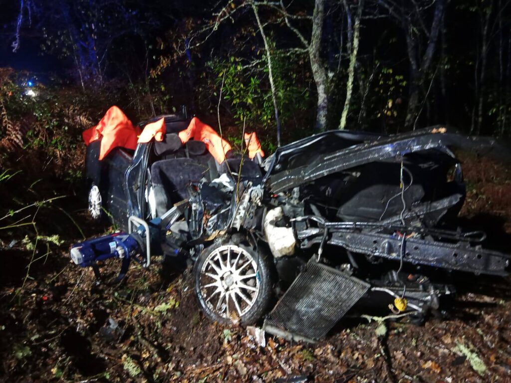 Imágenes: Bombeiros de Ponteareas/ Pasadas las nueve de la noche de este martes, el 112 Galicia recibió un aviso automático que alertaba de la salida de vía de un turismo en la EP-2703, a la altura de Padrones, en Ponteareas. Gracias al sistema, los equipos de emergencias pudieron contar de inmediato con las coordenadas exactas del siniestro y establecer comunicación con una de las personas implicadas, que informó de que uno de los ocupantes estaba atrapado e inconsciente.
