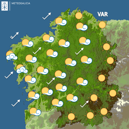 Las temperaturas mínimas experimentarán un ligero descenso, mientras que las máximas subirán de forma suave. En cuanto a los valores previstos, Vigo y Pontevedra alcanzarán los 17 grados, con una mínima de 7. Ourense llegará a los 16 grados; Ferrol a 15; A Coruña marcará 14; Santiago 13 y Lugo 12.