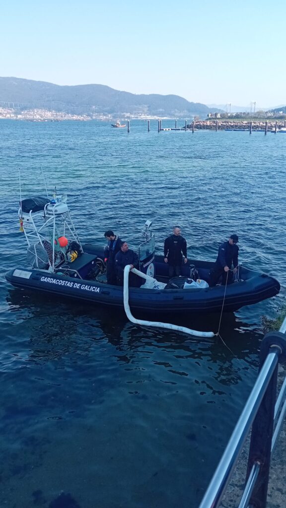 Hasta el lugar se desplazaron efectivos de bomberos, personal del 061, Salvamento Marítimo, la empresa de lucha contra la contaminación SEGEM, la compañía de buceo Northcomdiving, el Guardacostas de Galicia, así como agentes de la Policía Nacional, Guardia Civil y Policía Portuaria, además de personal de Medio Ambiente y Seguridad de la Autoridad Portuaria de Vigo.