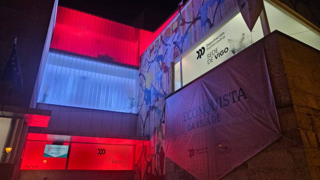 El edificio luce ya elementos conmemorativos y, durante las noches, se iluminará con los colores blanco y rojo, característicos de la ciudad. Esta acción refuerza el apoyo institucional a una de las fiestas más importantes de Vigo.