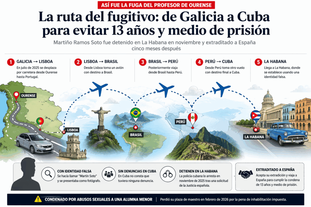 El fugitivo, estaba arrestado desde noviembre de 2025 en la capital cubana en cumplimiento de una solicitud emitida por la Audiencia Provincial de Ourense, dentro de una operación de cooperación internacional entre España y Cuba.